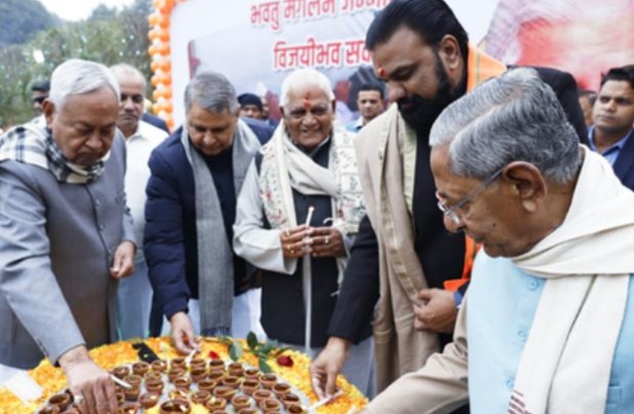 सम्राट चौधरी ने नीतीश कुमार का स्वागत किया। इस दौरान सीएम नीतीश ने गुब्बारे को हवा में भी उड़ाया और दीप जलाए। मुख्यमंत्री ने चौधरी को गुलदस्ते देकर जन्मदिन की शुभकामनाएं दीं।